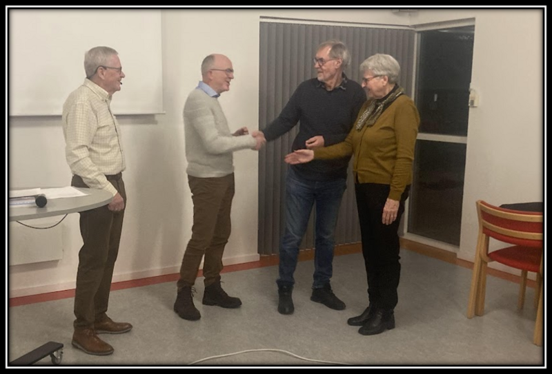 På billedet ses fra medlemsoptagelsen fra venstre formand for klubbens bestyrelse, Lars Christensen, Carsten Haugaard Nielsen, formand for medlemsudvalget, Mogens Kjærgaard Larsen og formand for programudvalget (som Carsten indtræder i), Birgit Eskerod Christensen.
